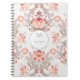 Estampado de flores hermoso y elegante en fondo ligero del damasco. Cuaderno espiral sofisticado y femenino con el monograma y el nombre en el círculo blanco. Todo es adaptable: usted puede cambiar fácilmente las iniciales (fuente, color, tamaño y posición) y diseño (tamaño y posición) haciendo clic el botón del personalizar. Otros modelos están disponibles.