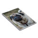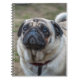 Un cierre encima de la fotografía de un perro lindo del barro amasado imprimió en la cubierta de un cuaderno.