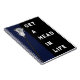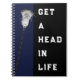 Cita motivacional de Lacrosse e ilustración de palo de lax en cuaderno azul marino. Para personalizar, agregue nombre.
