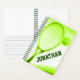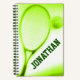 Raqueta de tenis y libreta verde de deportes de tenis. Personalizar este libro con tu propio nombre. Actualmente se lee Jonathan. Ideal para un regalo de agradecimiento a un entrenador o jugador de tenis. Diseñado por Sarah Trett para www.mylittleeden.com en Zazzle.