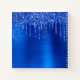Crea tu propio diseño de fiesta de cumpleaños 16 (o cualquier celebración de año de hitos) en un cuaderno cuadrado en blanco. Girly faux brillante purpurina azul real cae sobre un falso Relieve metalizado de coordinación brillante a azul oscuro de estilo metalizado cepillado brillante. Personalizar el clásico elegante estilo de letra caligrafía para crear su propio libro de invitados su celebración especial. El diseño se crea con arte digital que imprime como una foto.