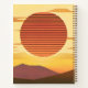 Diario en un desierto retro, minimalista puesta de sol sobre colinas, en tonos de naranja de óxido profundo, amarillo dorado y marrón, con texto de personalizable