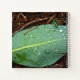 Una hoja verde solitaria se sienta sobre el mantillo, acoplada con rocío. ¡Envíen algo de calma natural a alguien hoy!