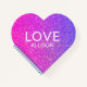 Toma notas y muestra tu lado glam con este Día de San Valentín Love Purple Purpurina Monograma Heart Notebook . Tiene un color púrpura y rosa que hace brillar un purpurina oscuro en ambos lados. El frente está diseñado con el texto "amor" seguido de un nombre personalizado con letras en negrita y blanco.
