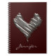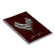 Elegante cuaderno con corazón plateado sobre fondo rojo sangre