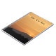 Un precioso cuaderno de notas al atardecer con una escena fotográfica del sol cayendo detrás de una montaña.