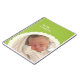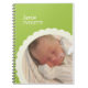 Moda, contemporánea pero linda. Este diario personalizado muestra su foto favorita encerrada en un marco de círculo de vieiras. Dos líneas de texto están fijadas en el tipo de letra más adorable contra el fondo de un micro polka punto. Personalizar este cuaderno de espiral con foto de bebé para padres o abuelos por primera vez. Este cuaderno es un gran regalo para quien quiera escribir o garabatear.