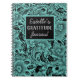 En un fondo verde azulado verde azul, hay un bosquejo floral negro para el contraste con un cuadrado negro donde puedes personalizar tu diario.