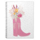 Este diario sureño de moda es perfecto para cualquier edad, para el chica de la escuela a quien le gusta tomar muchas notas al estudiante universitario en Texas Tech o tal vez la mamá que ama un fin de semana en Roundtop. El cuaderno tiene una vaquera rosa o una bota de vaquero con flores silvestres para una caprichosa toma al estilo de campo.