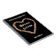 Un corazón de tocino gracioso sobre negro en un cuaderno enlazado en espiral. Agrega tu nombre u otro texto. Las páginas de bloc de notas no contienen recetas, añada la suya propia.