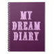 Un cuaderno púrpura donde usted puede anotar todos sus sueños extraños. Con el texto rosado "mi diario ideal".