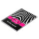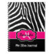 Este libro monogramado de notas de patrón de estampado de cebra en blanco y negro con acentos rosados calientes tiene cuadros de plantilla para que añada su nombre, monograma y otro texto. Si necesita ayuda para personalizar este elemento, envíe un correo electrónico a niteowlstudio@gmail.com para obtener ayuda.