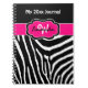 Cuaderno Diario personalizado de rayas de cebra blanca rosa