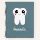 Un cuaderno de espiral personalizado con un dibujo de un gran diente blanco con una sonrisa kawaii linda y grandes ojos felices.
