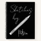 Un sketchbook moderno en blanco y negro para personalizar con el nombre del artista.