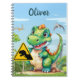 Dinosaurio trex verde juguetón personalizado en cuaderno de espiral del mundo jurásico.