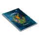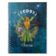 Un lindo cuaderno ilustrado de acuarela presenta diosa de la luna con vestido verde esmeralda con el pelo rojo en llamas sobre el fondo de cielos celestes. Personalizable con texto de script en blanco