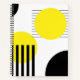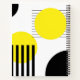Ilustracion de diseño abstracto con formas geométricas (círculos y rayas) en tonos amarillos y negros sobre fondo blanco.