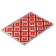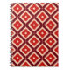 Un patrón artístico continuo con formas geométricas rojas, naranjas y beige que forman motivos de estrellas interconectadas.