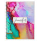 Portátil de espiral personalizado con un diseño artístico abstracto. Pintura acuarela con colores que mezclan y mezclan creando un bonito patrón de mármol fluido. Un marco blanco con un borde falso de Relieve metalizado dorado sobre el techo con tu texto personalizado escrito en el interior.