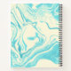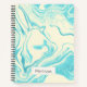Un portátil de espiral elegante y sofisticado con un elegante patrón de mármol falso con colores agitados en tonos azul turquesa y crema. Un marco de color crema con un borde dorado sobre el techo con un nombre personalizado en el interior.