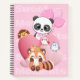 Un diseño encantador que presenta un panda lindo y sus amigos rodeados de globos rosados y corazones suaves. Este diseño trae un toque de alegría y amor para iluminar tu día.