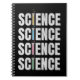 Ilustracion grunge colorido con diseño de texto "Ciencia, ciencia, ciencia" y decoración de tubos de ensayo coloridos