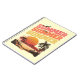 Ilustracion gris de estilo retro con diseño de texto amarillo, rosa y naranja "Verano, verano, verano" y playa con puesta de sol en las montañas con palmeras