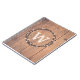Diseño de monograma para Navidades con decoración de flores y nieve sobre fondo rústico de madera