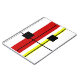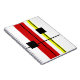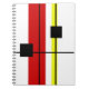 Diseño geométrico abstracto de arte moderno con líneas negras, rojas, amarillas y cuadrados negros sobre fondo blanco
