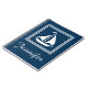 Diseño de temática náutica con decoración de velero en cuadrados a rayas sobre fondo azul