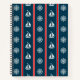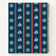 Diseño náutico con velero y decoración de brújula sobre fondo rayado rojo, azul y blanco