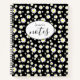 Este cuaderno presenta un bonito patrón de flor de margarita en blanco y negro, junto con un nombre personalizado y la palabra "Notas" en la portada.