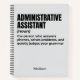 Graciosa definición de asistente administrativo (B4) Este divertido diseño de definición de asistente administrativo hace el regalo perfecto para cualquier oficina de manejo de horarios de superhéroes, llamadas y caos con gracia. Ideal para compañeros de trabajo, asistentes, secretarios y todo aquel que mantenga funcionando el lugar de trabajo. Una obligación para cualquiera que busque cuadernos auxiliares administrativos con humor y estilo.