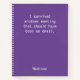 Funny Personalized I Survived Office Meeting Notebook incluye el texto "Sobreviví a otra reunión que debió haber sido y envié un correo electrónico" con su nombre personalizado a continuación. Personalice editando el texto en los cuadros de texto proporcionados. Diseñado por ©Evco Studio www.zazzle.com/store/evcostudio