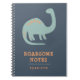 Un cuaderno superlindo para un niño con una ilustración de un dinosaurio en azul y naranja suaves, sobre un fondo azul marino. El título editable dice "Notas formidables". Personaliza con el nombre del niño. Esto hace un regalo excelente para el regreso a clases.