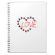 Dibujos de huellas de perros, un corazón rojo y la palabra "amor". Diseño original.