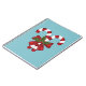 El ilustracion original de Destei de dos Navidades de rayas rojas y blancas dulces de caña de caramelo decorados con un arco rojo y una planta de Navidades holly / Common Holly. El color de fondo es azul.
