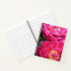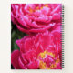 Disfruta de esta imagen de dos flores de peones fuchsia completas disfrutando del sol de verano que se muestra tanto en la parte delantera como en la trasera mientras escribes todo lo que es importante para ti en tu diario. Un regalo maravilloso para ti mismo, un amigo o esa persona especial.