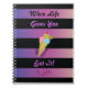 este diseño presenta clásicas rayas negras simples sobre el fondo dorado índigo violeta con helado de oro y una cita humorística: "cuando la vida te da helado, come, simple!!"