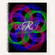 Colorful modern geometric 3D double loop mesh custom spiral notebook with front cover text.