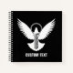 Paloma voladora con un icono de clave simple. Texto personalizado.