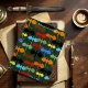 Un ala de dragones con los colores de la mosca negra, marrón, roja, naranja, amarilla, azul y verde abren las alas sobre un fondo verde oscuro que se eleva hacia arriba. Los dragones son dibujados al estilo de un tatuaje tribal.