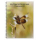 The front of this journal spiral notebook features my original photograph of a dragonfly with blue and brown wings holding on to a small branch. A Bible verse from 1 Thessalonians 5:21 is at the top of the image.