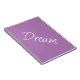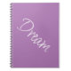 Anote sus pensamientos en este cuaderno enlazado en espiral con "Dream" en letras de guiones blancos y cubierta de púrpura de lavanda.