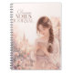 A beautiful dreamy notes journal featuring a soft romantic illustration of a girl holding a notebook surrounded by delicate flowers and a pastel aesthetic background. This elegant and calming design creates a peaceful and inspiring vibe, perfect for writing, journaling, planning, or capturing your daily thoughts.
