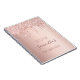 Un cuaderno para un glamoroso y glamoroso cumpleaños dulce 16. Un falso fondo dorado rosa con un elegante purpurina de oro falso rosa gotea, pinta goteo. El texto: El nombre está escrito en oro rosa oscuro con un gran guión de estilo moderno con letras a mano. Tempate por una fecha y 16 años. Perfecto como guía de cumpleaños o para la planificación y organización de fiestas.