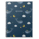 Este hermoso diario presenta un encantador patrón de nubes flotantes, lunas, estrellas y ballenas azules sobre un fondo azul profundo. El nombre de su hijo puede ser personalizado en la portada. Este dulce cuaderno hace un regalo de cumpleaños o un regalo de vuelta a la escuela maravilloso.