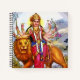 Mantén tus notas importantes en este cuaderno con hermosas pinturas digitales de la diosa hindú Madre Durga. El león representa poder, voluntad y determinación. La madre Durga montada en el león simboliza su dominio sobre todas estas cualidades. Esto sugiere al devoto que uno tiene que poseer todas estas cualidades para superar el demonio del ego. Esta pintura moderna aporta sabiduría antigua a tu vida diaria.