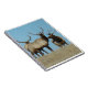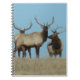 Bloc de notas con cola de toro. El cielo despejado del toro es un excelente telón de fondo para esta fotografía de tres grandes alce del toro. Cuando no se alimenta a los toros se alían en las praderas como para pasar el rato en las cumbres de las colinas, donde pueden ver cualquier amenaza que se acerque.